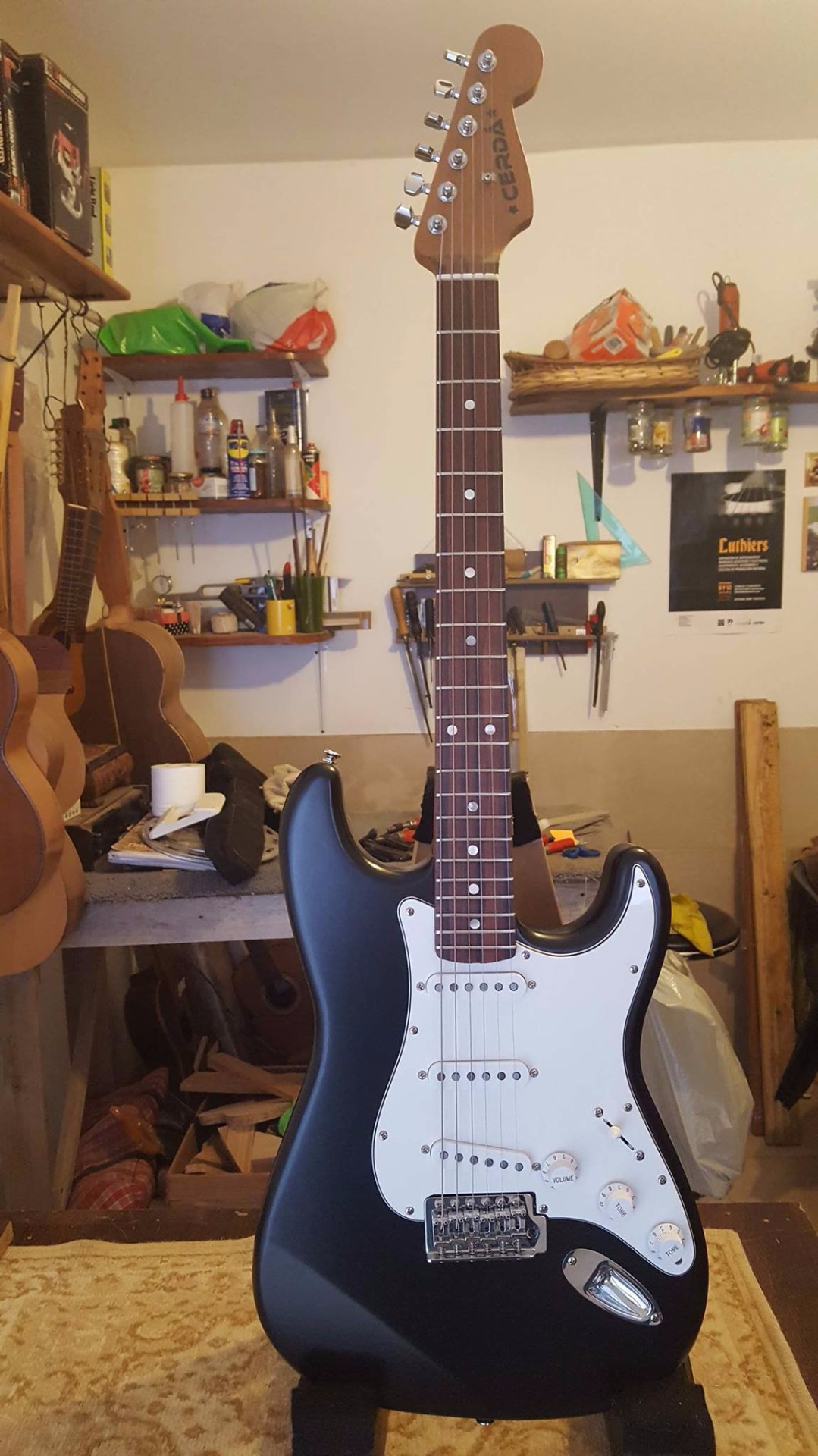 Stratocaster con cuerpo de Guindo y mango de Mara.